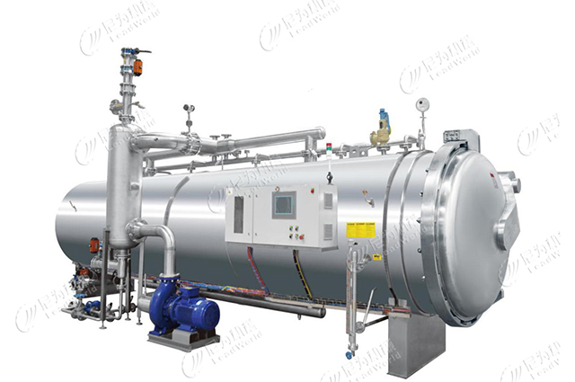 肉類、水產(chǎn)類及某些蔬菜罐頭是低酸性食品,微生物抗熱性強(qiáng),故要采用較高溫度。通常高于100℃,最高達(dá)121℃,殺菌時(shí)間也要相應(yīng)延長。因此多選用殺菌釜進(jìn)行高溫加壓殺菌。可根據(jù)產(chǎn)品特性和工藝要求選擇蒸汽、水浴、噴淋、旋轉(zhuǎn)等殺菌方法,自行設(shè)定殺菌溫度、時(shí)間和壓力。