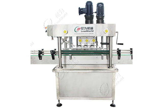 灌裝完成后就是旋蓋封口,尼為自動上蓋旋蓋機采用直線式進瓶、自動落蓋的方法,可連續上蓋、旋蓋,提高了上蓋速度,適合大產量生產,機器調節也很方便。